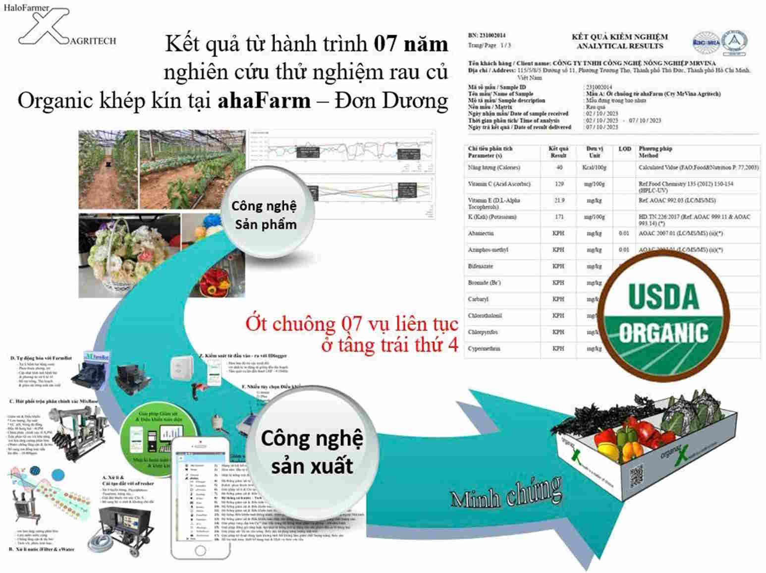 Với hành trình thực nghiệm từ Thủy Canh & Giá thể kiểm chứng nghiệm thức dinh dưỡng & quy trình chăm sóc hơn 07 Dưa Lưới, 03 loại Cà chua & 05 loại Ớt Chuông trong 02 năm từ 2017-2019 chùng tôi đã chuẩn hóa các nghiệm thức, quy trình chăm sóc trước khi bước vào canh tác trực tiếp trên đất với tiêu chuẩn USDA. Và khoảng thời gian 2019-2023 là hành trình thực nghiệm Chuyên canh Cát Tường, Cúc Mẫu đơn trên đất & Đặc biệt là sự thành công trong canh tác chuyên canh Cà chua, Ớt Chuông, Dưa lưới, Cần Tây, Súp Lơ theo tiêu chuẩn USDA qua 07 vụ liên tục tại ahaFarm, Tân Lập, Đơn Dương, Lâm Đồng.