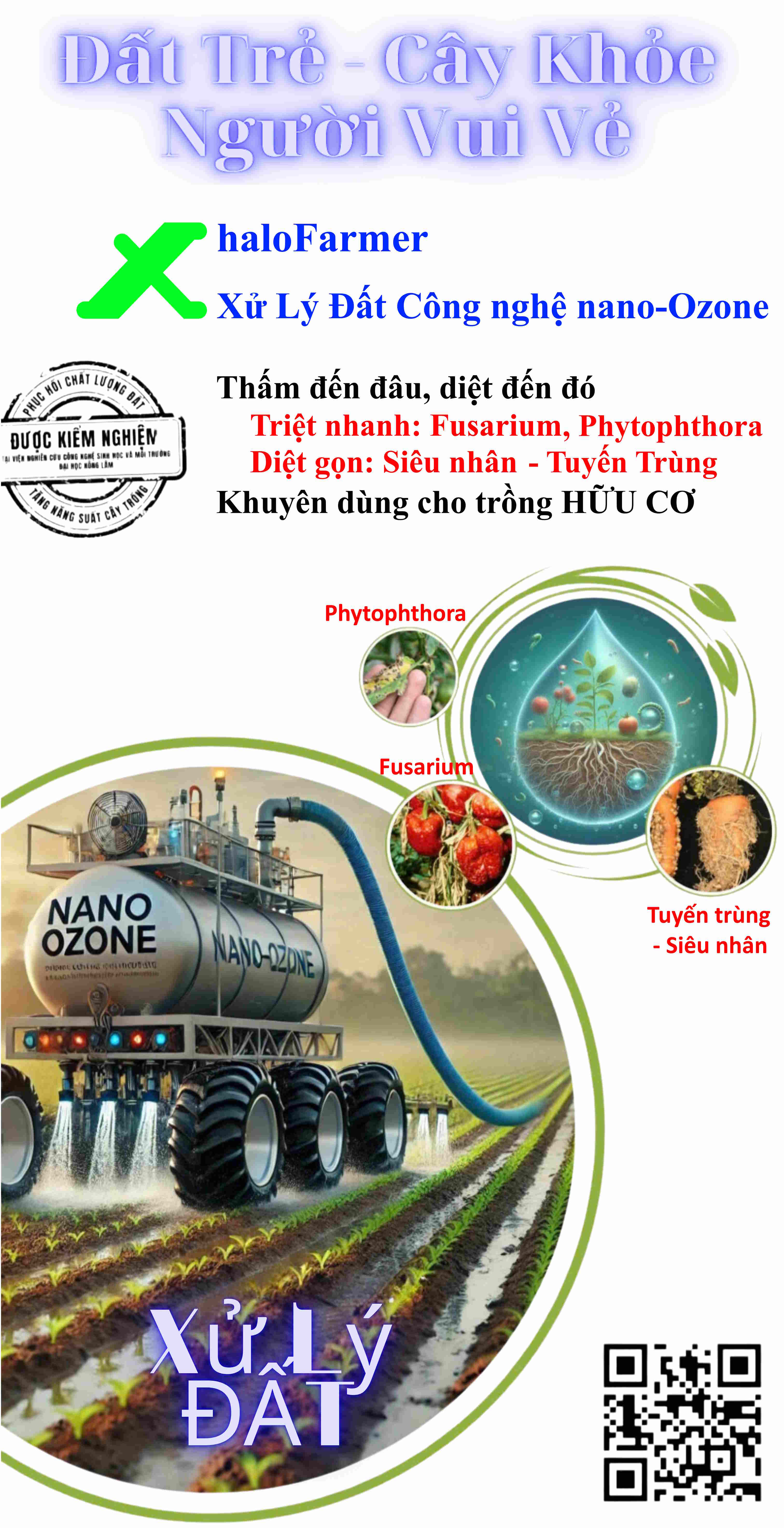 Dịch vụ Giải pháp xử lí, giải độc đất trồng trọt Ozone SoilDetoxTiêu diệt hoàn toàn Phytopthora, Fusarium, Tuyến trùng…...Cải tạo hệ vi sinh vật đất liên tục qua quá trình trồng.